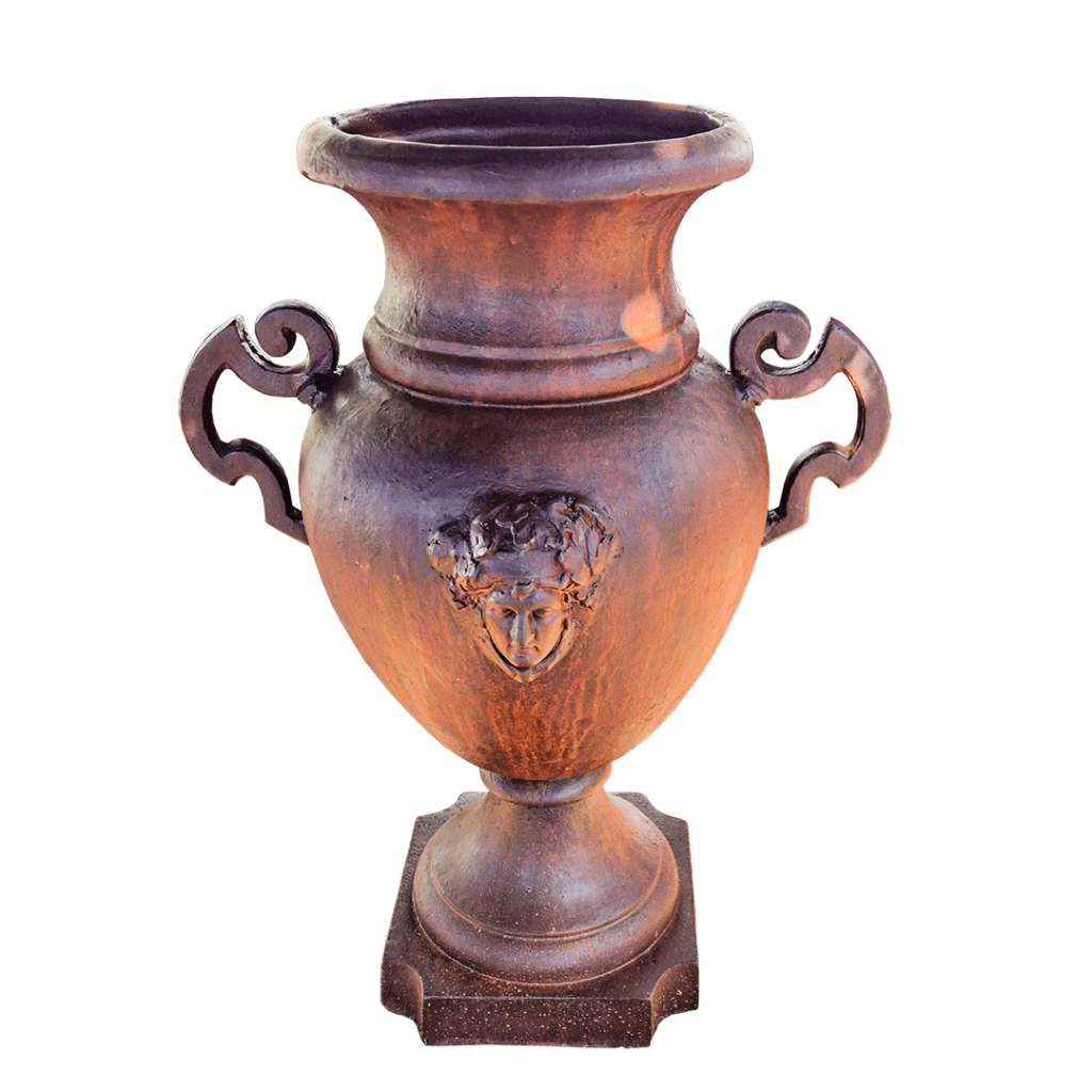 Descubra a Ânfora Jarro com Alças Cara de Índia em Ferro Fundido Grande, perfeita para adicionar um toque rústico e elegante à sua decoração.