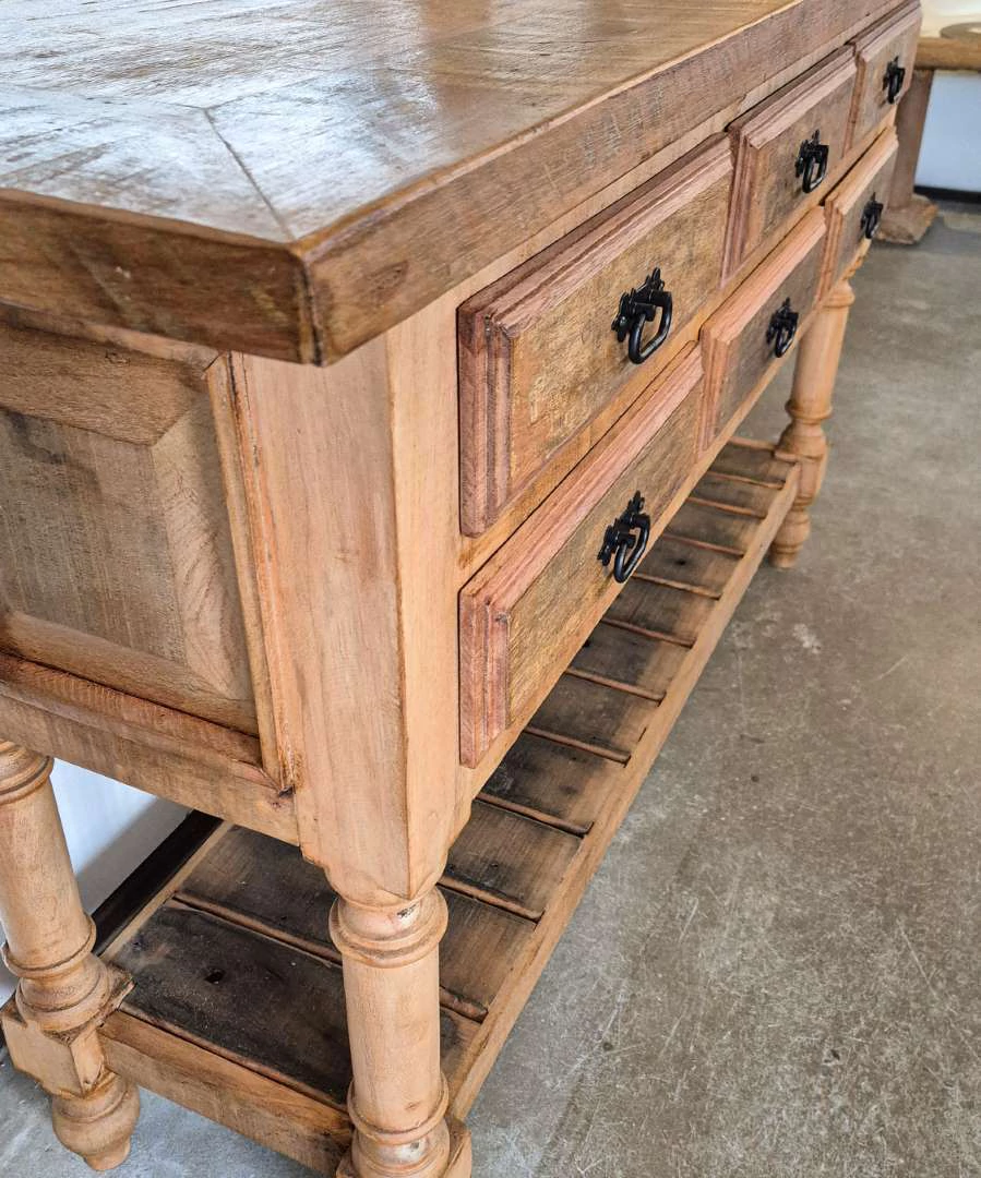 Transforme sua decoração com o Aparador 6 Gavetas, Prateleira e Pés Torneados P em Demolição. Elegância rústica e funcionalidade em um único móvel.