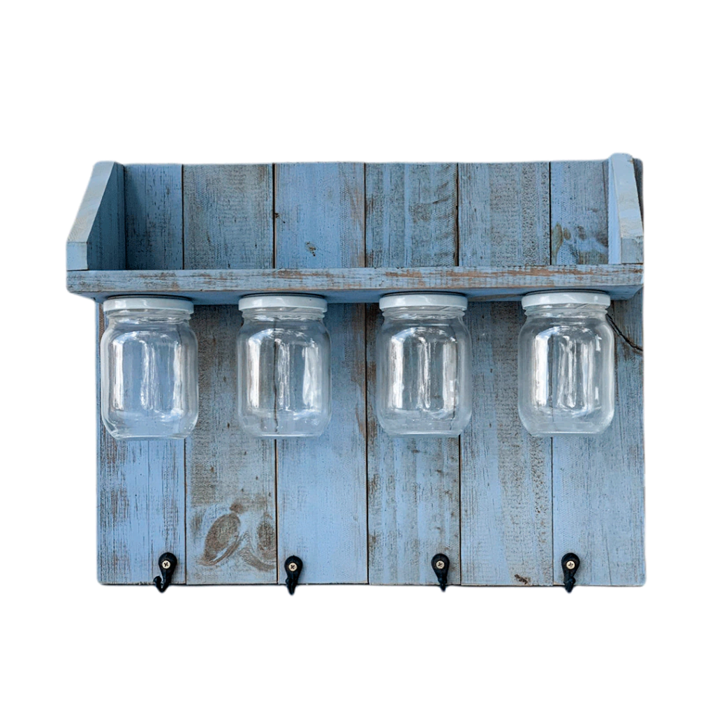 Acentue a beleza da sua casa com o Porta Temperos e Porta Chaves Artesanal em Madeira Azul. Este organizador feito à mão é uma adição encantadora à decoração da sua casa, mantendo seus temperos e chaves organizados